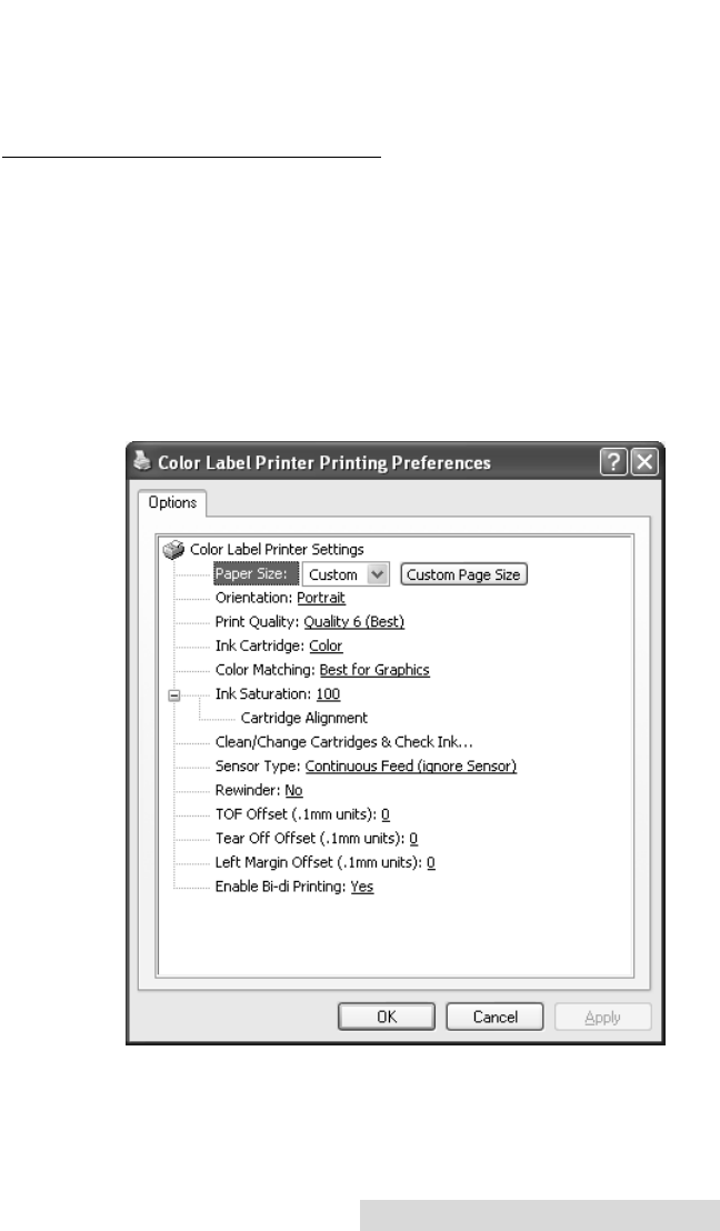 Printing Preferences from the drop-down menu.