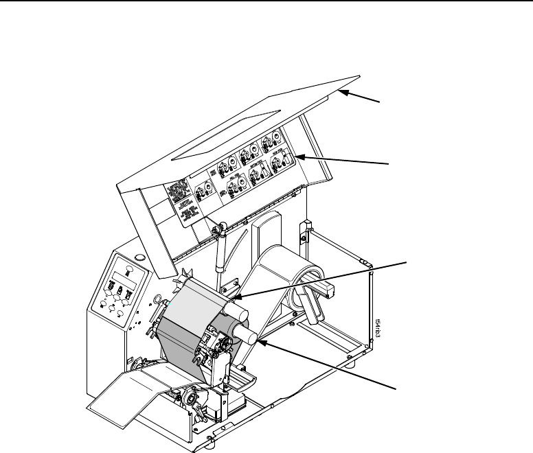 6. Attach the ribbon to the fiberboard core on the ribbon take-up