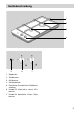 Gerätebeschreibung 1 2 3 4 5 6 7 1 Rippenrost 2 Starkbrenner 3 Hilfsbrenner 4 Schalterblende 5 Drucktaste für elektrische Taktfunkenzündung 6 Knebel für Kochstelle, vorne, Hilfsbrenner 7 Knebel für Kochstelle, hinten, Starkbrenner 5