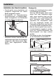 Installation Aufstellen des Geschirrspülers • Geschirrspüler muss standsicher und waagrecht ausgerichtet auf festem Boden aufgestellt werden. • Schraubfüße mit Schraubendreher herausschrauben, um Bodenunebenheiten auszugleichen und Gerätehöhe an andere Möbel anzugleichen. • Ablaufschlauch, Zulaufschlauch und Netzkabel müssen innerhalb des Sockelrücksprungs hinten frei beweglich verlegt sein, damit diese weder abgeknickt noch abgequetscht werden können.