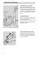 Saugen mit Papierfilterbeutel An Stelle des Kunststoff-Staubbehälters kann ein Papierfilterbeutel zum Saugen verwendet werden. Die Deckelsperre gemäß Abbildung aus dem Filterraum herausnehmen . . . . . . und dafür die Filterbeutelhalterung mit den beiden Zapfen in die angeformten Winkel einstecken. Papierfilterbeutel einsetzen Den Papierfilterbeutel bis zum Anschlag in die Filterhalterung einstecken, dann den Filterbeutel entfalten.