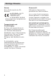 Inhaltsverzeichnis Sicherheitshinweise……………………………………………………………………….. 4 Wichtige Hinweise…………………………………………………………………………. 6 Normen…………………………………………………………………………………….... 6 Transportschutz und Grundreinigung……………………………………………………. 6 Stromausfall………………………………………………………………………………… 6 Abschalten des Gerätes…………………………………………………………………... 7 Geräusche………………………………………………………………………………….. 7 Geräteübersicht……………………………………………………………………………..