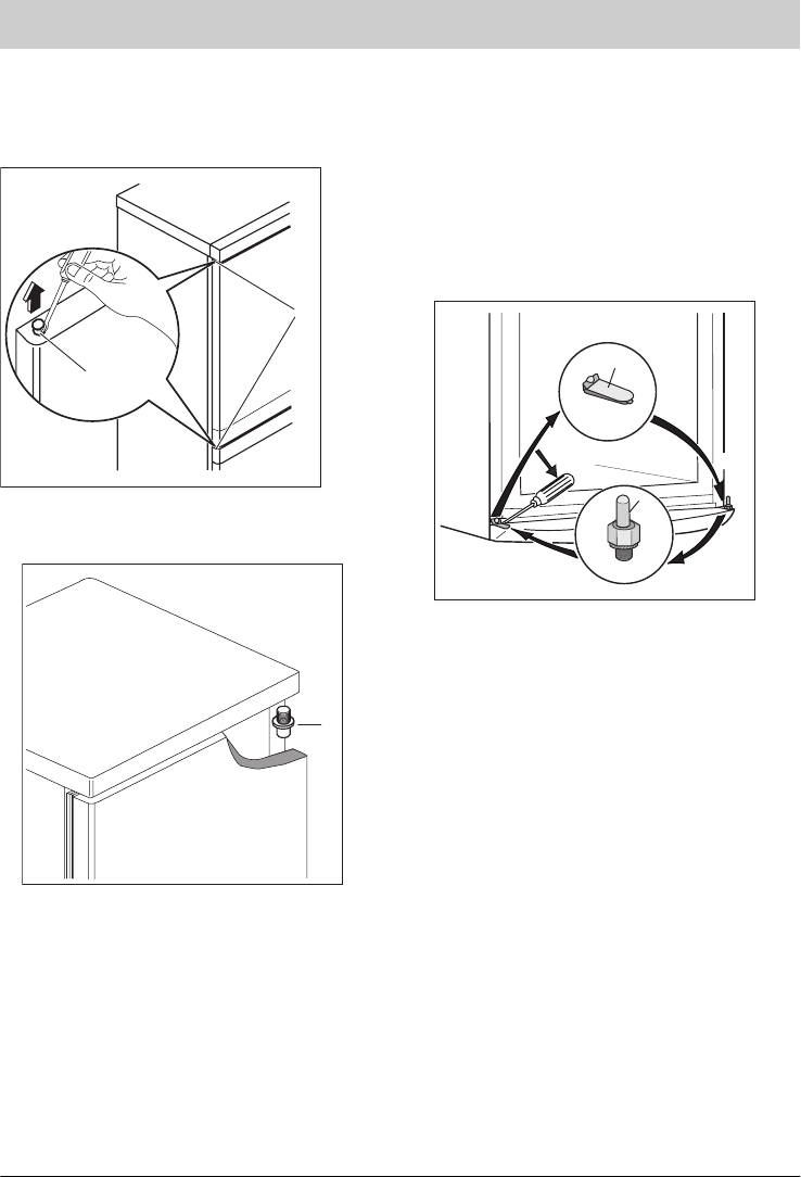• Die Abdeckung (e) am Sockel mit Hilfe