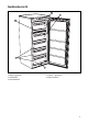 Geräteübersicht 1 3 2 4 5 1. Bedienungsblende 2. Gefriertablett 3. Superfrostfächer 4. Tiefkühl - Lagerfächer 5.