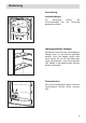 Geräteübersicht ➀ Butter/Käse-Fach ➁ Türablage ➂ Kleinteilebehälter ➃ Flaschenfach ➄ Gemüseschalen ➅ Tauwasser-Abfluß ➆ Ablagen ➇ Thermostat/Beleuchtung ➇ ➀ ➆ ➁ ➅ ➂ ➄ ➃ Bedienung Inbetriebnahme Netzstecker in die Steckdose einstecken. Thermostatknopf auf die gewünschte Stellung drehen. Vor dem ersten Einlagern das Gerät ca. 4 Stunden bei höher Reglerstufe vorkühlen. Achtung! Bei höher Reglerstellung können MinusTemperaturen auftreten - Flaschen können platzen.