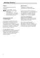 Inhaltsverzeichnis Sicherheitshinweise……………………………………………………………………….. Wichtige Hinweise…………………………………………………………………………. Normen…………………………………………………………………………………….... Transportschutz und Grundreinigung……………………………………………………. Stromausfall………………………………………………………………………………… Abschalten des Gerätes…………………………………………………………………... Geräusche………………………………………………………………………………….. Geräteübersicht…………………………………………………………………………….. Bedienung…………………………………………………………………………………… Inbetriebnahme ………………………………………………………………………..