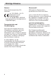 Inhaltsverzeichnis Sicherheitshinweise……………………………………………………………………….. Wichtige Hinweise…………………………………………………………………………. Normen…………………………………………………………………………………….... Transportschutz und Grundreinigung……………………………………………………. Stromausfall………………………………………………………………………………… Abschalten des Gerätes…………………………………………………………………... Geräusche………………………………………………………………………………….. Geräteübersicht…………………………………………………………………………….. Bedienung…………………………………………………………………………………… Inbetriebnahme ………………………………………………………………………..
