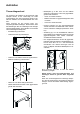 Aufstellen Türanschlagwechsel - Vor Anschluss des Gerätes an das Stromnetz sollte überprüft werden, ob der Türanschlag von rechts (Lieferzustand) nach links gewechselt werden muss, falls der Aufstellort und die Bedienbarkeit dies erfordern. Gerät vorsichtig auf den Rücken legen, evtl. Verpackungsmaterial unterlegen. Darauf achten, dass die Rohrleitungen bzw. der Verflüssiger nicht verbogen oder beschädigt werden, der Fußboden nicht verkratzt oder anderweitig beschädigt wird. - Sockelblende (D) abnehmen.