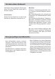 Was tun bei Problemen? Die Betriebskontrolllampe leuchtet nicht • Haben Sie alle notwendigen Schalter betätigt? Unqualifizierte Eingriffe und Reparaturen am Gerät sind gefährlich, weil Stromschlag- und Kurzschlussgefahr besteht. Sie sind zur Vermeidung von Körperschäden und Schäden am Gerät zu unterlassen. Deshalb solche Arbeiten nur von einem Elektrofachmann, wie z.B. unserem Technischen Kundendienst, ausführen lassen.