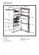Geräteübersicht 4 5 Gefrierabteil 1 6 Kühlabteil 7 2 8 9 3 1 Butter-/Käsefach 2 Türablage 3 Flaschenfach 4 Ablage zum Einfrieren 5 Temperaturregler/Beleuchtung 10 6 Ablagen 7 Tauwasser-Abfluss mit Reiniger 8 Abdeckplatte Gemüseschale 9 Gemüseschale