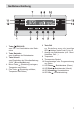 Gerätebeschreibung 1 Taste (EIN/ AUS) zum Ein- und Ausschalten des Backofens 2 Taste Backofen zum Anwählen der Betriebsarten 3 Taste Schnell zum Einschalten der Schnellaufheizung „SAH” (SchnellAufHeizung) 4 Minus-Taste (Einstellung verringern; Temperatur und Zeiten) (Einstellung erhöhen; 5 Plus-Taste Temperatur und Zeiten) 6 Taste Zeit zur Einstellung muss die jeweilige LED blinken; siehe Punkt 11 bis 14 7 Anzeige der Betriebsarten (z.B. Ober-/ Unterhitze, Grill ...