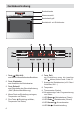 Gerätebeschreibung Bedienblende Wrasenaustritt Backofentürgriff Backofentür mit Sichtfenster 1 Taste (EIN/ AUS) zum Ein- und Ausschalten des Backofens 2 Taste Backofen zum Anwählen der Betriebsarten 3 Taste Schnell zum Einschalten der Schnellaufheizung „SAH” (SchnellAufHeizung) 4 Minus-Taste (Einstellung verringern; Temperatur und Zeiten) 5 Plus-Taste (Einstellung erhöhen; Temperatur und Zeiten) 6 Taste Zeit zur Einstellung muss die jeweilige LED blinken; siehe Punkt 11 bis 14 7 Anzeige der Betriebsarten