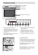 Gerätebeschreibung Bedienungsblende Backofen Dauer Kurzzeit Ende Betrieb Zeit stellen Wrasenaustritt Auswahl Backofentürgriff Backofentür mit Sichtfenster Backofen Dauer Kurzzeit Ende Betrieb Zeit stellen Auswahl 1 Temperaturregler für Backofen 2 Backofenkontrolllampe. Sie leuchtet, solange der Backofen aufheizt und sie erlischt, wenn die Temperatur erreicht ist. 3 Zeitschaltuhr 4 Betriebskontrolllampe. Sie zeigt an, dass der Backofen in Betrieb ist.