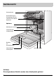 Geräteansicht Deckendusche Gummidichtung für Ankopplung des Wasserzulaufs zum oberen Sprüharm Sprüharme Härtebereichsschalter Vorratsbehälter für Spezialsalz Behälter für Reinigungsmittel Vorratsbehälter für Klarspüler Typschild Siebe Achtung! Die integrierbaren Modelle werden ohne Arbeitsplatte geliefert 8
