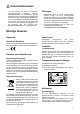 Störungen Sicherheitshinweise • • Elektrogeräte dürfen nur durch Elektrofachkräfte repariert werden, da durch unsachgemäße Reparaturen erhebliche Folgeschäden entstehen können. Sollte keine Abhilfe durch die im Abschnitt “Störungen” aufgeführten Maßnahmen erreicht werden, ist der Kundendienst zu verständigen. Die Netzanschlussleitung darf nur durch eine Fachkraft ausgetauscht werden.