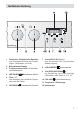 Gerätebeschreibung Bedienblende Wrasenaustritt Backofentürgriff Backofentür mit Sichtfenster 1 2 3 4 1 Temperatur- /Zeitwähler für Backofen 2 Betriebskontrolllampe. Sie zeigt an, dass der Backofen oder eine Kochstelle eingeschaltet ist.
