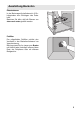 Backwagentür Zum Reinigen läßt sich die Backwagentür Ihres Gerätes abnehmen. 1 Achtung: Die Führungsstäbe der Backwagentür sind mit dauerhaftem Fett behandelt. Dieses läßt sich aus Textilien nur schwer entfernen. Backwagentür aushängen 1. Backwagentür herausziehen. 2. Backwagentür mit beiden Händen an den Seite anfassen. 3. Tür senkrecht nach oben aus den Führungsstäben herausziehen. 1 Vorsicht: Nicht am Türgriff herausziehen! 4.