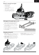 IT Attrezzi e materiali consigliati • • • • • • • • Pinze a becchi stretti Fazzoletto di carta Alcol denaturato Cacciavite Phillips #1 Chiave esagonale: 1,5mm, 2mm, 2,5mm, 3mm Nastro trasparente (DYNM0102) Grasso Marino Pro Boat con pistola Set nastro a strappo, WP 4 pezzi Montaggio del supporto per lo scafo 1. Inserire le linguette nelle fessure sui supporti terminali. Le scritte sui pezzi laterali devono essere rivolte all’esterno delle fiancate del supporto. 2.