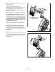 8. Maak het draadband rond de Hoofddraad (31) los en gooi weg. 8 6 Sluit terwijl een tweede persoon het Bedieningspaneel (6) bij de Staander (3) houdt, de Hoofddraad (31) en het Draad voor de Hartslagsensor (32) aan op de aansluitingen op het Bedieningspaneel. 31 3 8 De connectoren op de Draden (31, 32) moeten makkelijk in de aansluitingen glijden en op hun plaats klikken. Indien een connector niet makkelijk in een aansluiting glijdt, draait u de connector en probeert u het opnieuw.