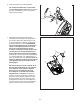 DE AANDRIJFRIEM AFSTELLEN Zie de GEDETAILLEERDE TEKENING op bladzijde 27. Zoek de Linker en Rechter Schermen (17, 18). Verwijder vervolgens alle schroeven van de linker en rechter Schermen; er zijn twee maten schroeven in de Schermen - let op welke maat schroef u verwijdert uit welk gat. Verwijder dan voorzichtig het Rechterscherm. Het kan zijn dat de drijfriem moet worden bijgesteld wanneer u de pedalen voelt slippen zelfs wanneer de weerstand in de hoogste stand staat.