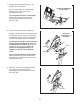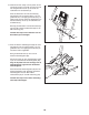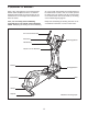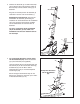 HOE DE ELLIPTISCHE TRAINER TE GEBRUIKEN DE HELLING VAN HET HELLINGSPLATFORM VERANDEREN DE ELLIPTISCHE TRAINER VERPLAATSEN Gezien de afmetingen en de zwaarte van de elliptische trainer, moet deze door twee personen verplaatst worden. Ga aan de voorzijde van de elliptische trainer staan, houd de staander vast en plaats een voet tegen een van de voorwielen. Trek aan de staander en laat een tweede persoon de hendel optillen tot de elliptische trainer rolt op de wielen.