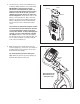 HOW TO USE THE MANUAL MODE The lower right display can show your pedaling pace in revolutions per minute (rpm) and the resistance level of the pedals. The display will change modes every few seconds. The display will also show your heart rate when you use the handgrip pulse sensor (see step 5 on page 16). Note: If there is a sheet of clear plastic on the face of the console, remove the plastic. 1. Press any button on the console or begin pedaling to turn on the console.