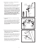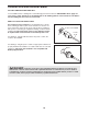 5. Place the treadmill in the storage position (see HOW TO FOLD AND MOVE THE TREADMILL on page 24). 5 25 84 Set the cylinder end of the Gas Spring (92) near the bracket on the base of the Uprights (84). 25 92 See the two small inset drawings. Using your fingernail or the end of a screwdriver, press on the end of the Spring Pin (25), pivot it, and pull it out of the Gas Spring (92). Be careful to avoid losing the Spring Pin. Note: Extra Spring Pins are included.