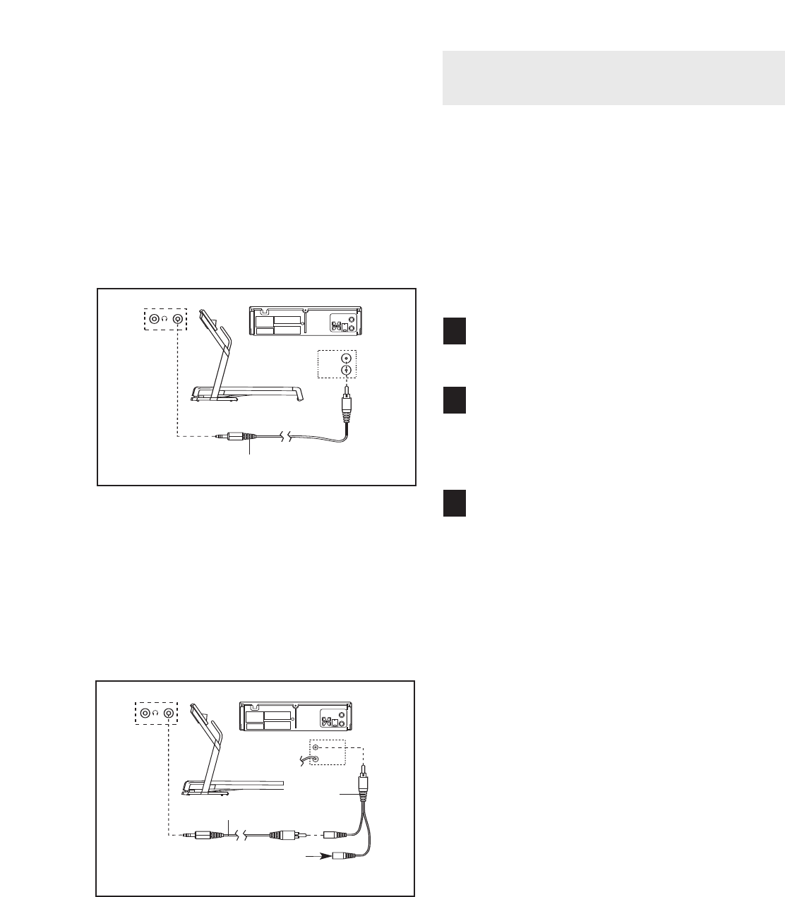 A. Plug one end of a long 3.5 mm to RCA stereo audio