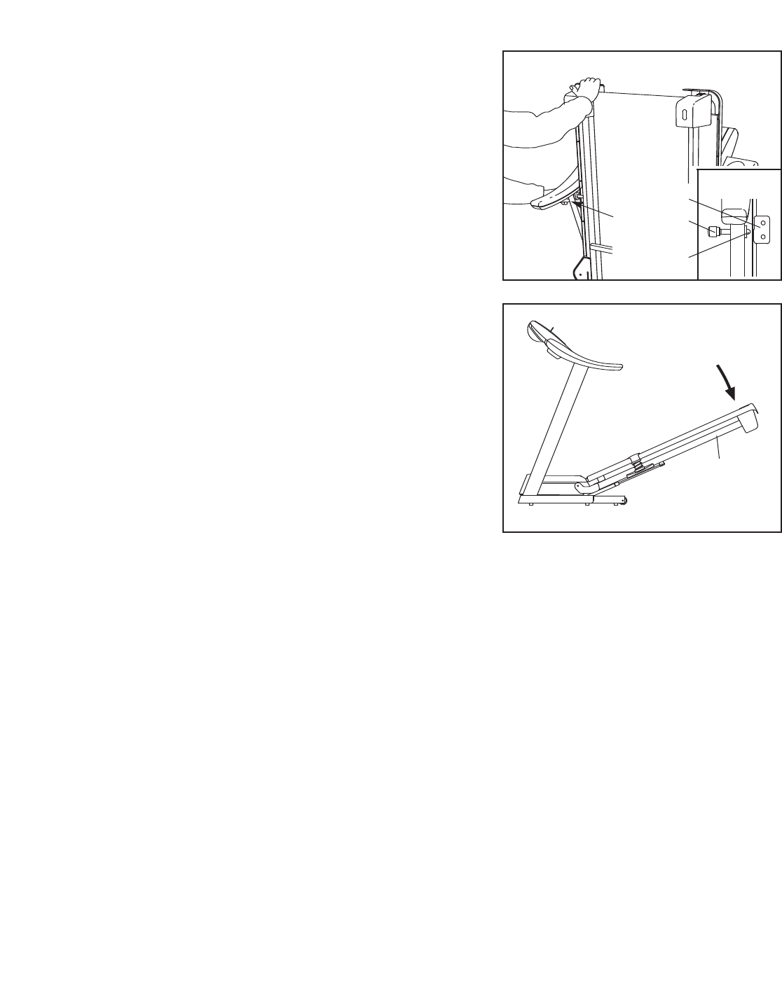 1. Hold the upper end of the treadmill with your right hand. Pull