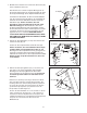 5. Bringen Sie die den Lauftrainer in die Lagerungsposition (siehe ZUSAMMENKLAPPEN UND TRANSPORTIEREN auf Seite 24). 5 25 84 25 Platzieren Sie nun das zylindrische Ende des Gasfeder (92) nahe der Klammer an der Basis der Pfosten (84). Sehen Sie sich die beiden Nebenabbildungen an. Drücken Sie mit einem Fingernagel oder dem Ende eines Schraubenziehers auf das Ende des Federstifts (25), drehen Sie es und ziehen Sie es aus der Gasfeder (92) heraus. Achten Sie darauf, den Federstift nicht zu verlieren.