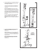 3. Draai de Staander (5) en de Bovenste Kap (23) zoals afgebeeld. Schuif de Bovenste Kap naar boven tegen de Staander. 3 Laat dan een tweede persoon de Staander (5) en de Bovenste Kap (23) bij het Onderstel (1) vasthouden. Zie de inzet-tekening. Zoek naar de draadband in de Staander (5). Bevestig het onderste uiteinde van de draadband aan de Draadharnas (60). Trek dan aan het bovenste uiteinde van het draadband totdat de Draadharnas helemaal goed door de Staander ligt. Gooi dan de draadband weg.