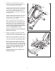 12. Fxez le Porte-Bouteille (37) au Montant (4) à l'aide de deux Vis de M4 x 16mm (104). 12 4 104 104 37 13. Retirez et jetez les attache-fils du Groupement de Fils (111) et des Fils du Détecteur Cardiaque (63). 13 7 Pendant quʼune autre personne tient la Console (7) près du Montant (4), reliez les fils de la console au Groupement de Fils (111) et aux Fils du Détecteur Cardiaque (63). 111 4 Enfilez le fil excédentaire vers le bas dans le Montant (4). 63 Conseil : évitez de coincer les fils.