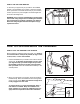 HOW TO MOVE THE TREADMILL Before moving the treadmill, convert the treadmill to the storage position as described above. Make sure that the storage latch is closed fully over the catch. 1. Hold the upper ends of the handrails. Place one foot on the base as shown. 2. Tilt the treadmill back until it rolls freely on the front wheels. Carefully move the treadmill to the desired location. To reduce the risk of injury, use extreme caution while moving the treadmill.