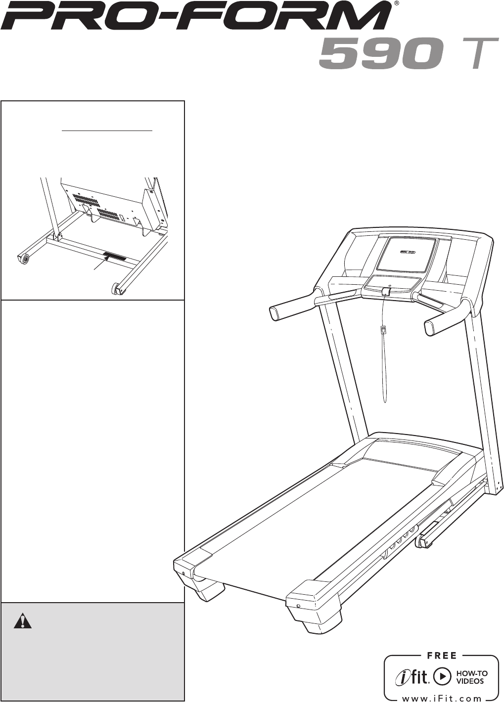 BEFORE YOU BEGIN Thank you for selecting the new PROFORM 590 T treadmill. The PROFORM 590 T treadmill provides an impressive selection of features designed to make your workouts at home more effective and enjoyable. manual. To help us assist you, note the product model number and serial number before contacting us. The model number and the location of the serial number decal are shown on the front cover of this manual. For your benefit, read this manual carefully before you use the treadmill.