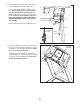 6. With the help of a second person, hold the console assembly near the Left Upright (75). 6 Console Assembly Connect the Upright Wire (70) to the console wire. See the inset drawing. The connectors should slide together easily and snap into place. If they do not, turn one connector and try again. IF YOU DO NOT CONNECT THE CONNECTORS PROPERLY, THE CONSOLE MAY BECOME DAMAGED WHEN YOU TURN ON THE POWER. 70 Remove the wire tie from the Upright Wire (70). Console Wire 75 Console Wire Wire Tie 70 7.