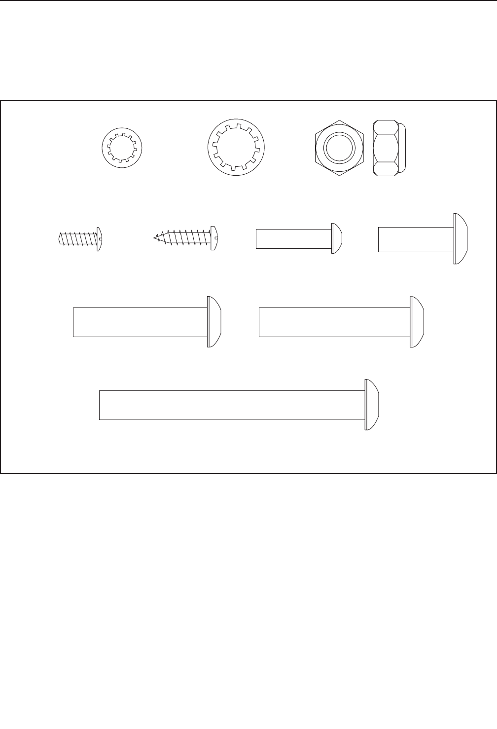 Use the drawings below to identify small parts used for assembly. The number in parentheses below each draw-