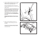 HOW TO USE A PRESET WORKOUT programmed for the next segment, the speed and/ or incline setting will flash in the display to alert you. The treadmill will then automatically adjust to the speed and incline settings for the next segment. 1. Insert the key into the console. See HOW TO TURN ON THE POWER on page 15. The workout will continue in this way until the last segment of the profile flashes in the display and the last segment ends. The walking belt will then slow to a stop. 2.