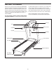 23. Inspect and properly tighten all parts of the treadmill regularly. 19. Never leave the treadmill unattended while it is running. Always remove the key, unplug the power cord, and press the power switch into the off position when the treadmill is not in use. (See the drawing on page 5 for the location of the power switch.) 24. 20. Do not attempt to raise, lower, or move the treadmill until it is properly assembled. (See ASSEMBLY on page 6, and HOW TO FOLD AND MOVE THE TREADMILL on page 24.