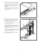 . IMPORTANT: To avoid damaging the Crossbar (107), do not use power tools and do not overtighten the #10 x 3/4" Screws (2). 12 First 2 12 Orient the Crossbar (107) as shown. Attach the Crossbar to the Handrails (82, 83) with four #10 x 3/4" Screws (2) and four #10 Star Washers (12); do not tighten the Screws yet. 102 9 107 82 Insert the Console Frame (102) into the Handrails (82, 83). Attach the Console Frame with four 1/4" x 1" Patch Bolts (9); do not tighten the Patch Bolts yet.