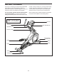17. Orient the Rear Console Cover (80) as shown. 17 Attach the Rear Console Cover (80) to the Upright (4) with two M4 x 16mm Screws (101). 79 Orient the Front Console Cover (79) as shown. 101 Attach the Front Console Cover (79) around the Upright (4) by pressing it onto the Rear Console Cover (80). 4 80 18. Make sure that all parts are properly tightened before you use the elliptical. Note: Extra parts may be included. Place a mat beneath the elliptical to protect the floor.