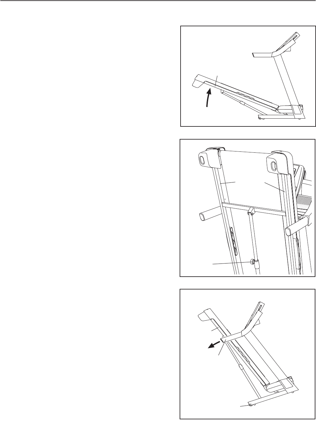 3. Plaats een voet tegen een wiel en breng de loopband voorzichtig omlaag tot deze in de opslagpositie staat.