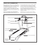 IMPORTANT : sʼil y a une feuille de plastique sur la console, enlevez-la. Pour éviter dʼendommager la plateforme de marche, portez des chaussures de sport lors de lʼutilisation du tapis de course. Lors de la première utilisation du tapis de course, vérifiez lʼalignement de la courroie mobile, et centrezla si nécessaire (reportez-vous à la page 27).