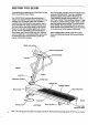 OPERATION AND ADJUSTMENT THE MAINTENANCE-FREE WALKING BELT Your treadmill features a maintenance-free walking belt coated with PERFORMANT LUBE TM, a highperformance lubricant. During the first few hours of use, it Is normal for a small amount of white powder to appear on the foot roils and the walking platform. The white powder is high-performance lubricant from the walking bell IMPORTANT: Never apply silicone spray or other substances to the walking belt or the walking platform.