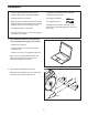 10. Identify the Right Pedal (11). 10 Using an adjustable wrench, firmly tighten the Right Pedal (11) clockwise into the Right Crank Arm (86). Firmly tighten the Left Pedal (10) counterclockwise into the Left Crank Arm (not shown). IMPORTANT: You must turn the Left Pedal counterclockwise to attach it. 10 Attach the right pedal strap to the Right Pedal (11) as shown. Attach the left pedal strap in the same way. 11 86 11. Attach the Row Bar (12) to the Strap (59) with the Row Bar Clip (100).