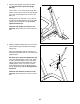 11. Insert the wires into the Right Handrail (64) through the indicated hole as you set the console assembly on the Uprights (66, 76). Make sure that no wires are pinched. 11 Attach the console assembly with ten #8 x 3/4" Screws (4). Start all ten Screws, and then tighten them. Do not overtighten the Screws. Console Assembly Wires Wires See step 5. Firmly tighten the six 3/8" x 3 1/4" Screws (2). Hole 4 4 64 4 4 4 66 76 12.