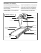 CONSOLE DIAGRAM FEATURES OF THE CONSOLE To turn on the power, see page 16. To use the manual mode, see page 16. To use a preset workout, see page 18. To use the information mode, see page 19. To use the sound system, see page 19. The treadmill console offers a selection of features designed to make your workouts more effective and enjoyable. When you select the manual mode of the console, you can change the speed and incline of the treadmill with the touch of a button.