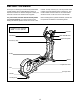 HOW TO USE THE ELLIPTICAL HOW TO PLUG IN THE POWER ADAPTER HOW TO MOVE THE ELLIPTICAL IMPORTANT: If the elliptical has been exposed to cold temperatures, allow it to warm to room temperature before you plug in the power adapter. If you do not do this, you may damage the console displays or other electronic components. To move the elliptical, first fold it as described at the left. Next, stand in front of the elliptical, hold the upright, and place one foot against one of the wheels.