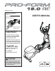 BEFORE YOU BEGIN Thank you for selecting the revolutionary PROFORM® 18.0 RE elliptical. The 18.0 RE elliptical provides an impressive selection of features designed to make your workouts at home more effective and enjoyable. manual. To help us assist you, note the product model number and serial number before contacting us. The model number and the location of the serial number decal are shown on the front cover of this manual. For your benefit, read this manual carefully before you use the elliptical.