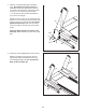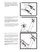 17. Attach the upper end of the Storage Latch (65) to the Frame (64) with a 3/8" x 1 3/4" Bolt (7) and a 3/8" Nut (13). 17 64 13 7 65 18. Lower the Frame (64) (see HOW TO LOWER THE TREADMILL FOR USE on page 29). 18 If one of the Rear Leveling Feet (69) doesn’t sit flat on the floor, turn the Rear Leveling Foot until it does, and then tighten the 1/2" Rear Leveling Foot Nut (41) against the Frame (64). Make sure that both 1/2" Rear Leveling Foot Nuts are tightened against the Frame.