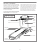 HOW TO TURN ON THE POWER HOW TO USE THE MANUAL MODE IMPORTANT: If the treadmill has been exposed to cold temperatures, allow it to warm to room temperature before turning on the power. If you do not do this, you may damage the console displays or other electrical components. 1. Insert the key into the console. Plug in the power cord (see page 16). Next, locate the power switch on the treadmill frame near the power cord. Press the power switch into the reset position.
